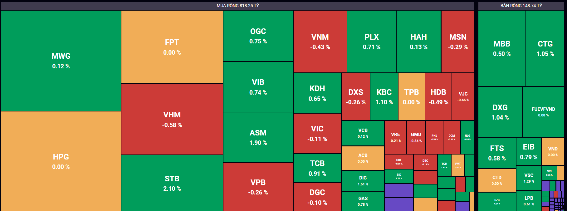 Hành động: rất hiếm khi thấy nhóm Bank đồng thuận cho hiệu suất sinh lời cao như lúc này, điều này cho thấy thị trường đang có rất nhiều tiềm năng bởi vì đã có nhóm cổ phiếu VUA (nhóm Bank) dẫn dắt. Dòng tiền trong tuần này sẽ có nhịp chốt lời từ nhóm Bank và mình nghĩ sẽ lan tỏa sang các nhóm cổ phiếu chưa tăng.