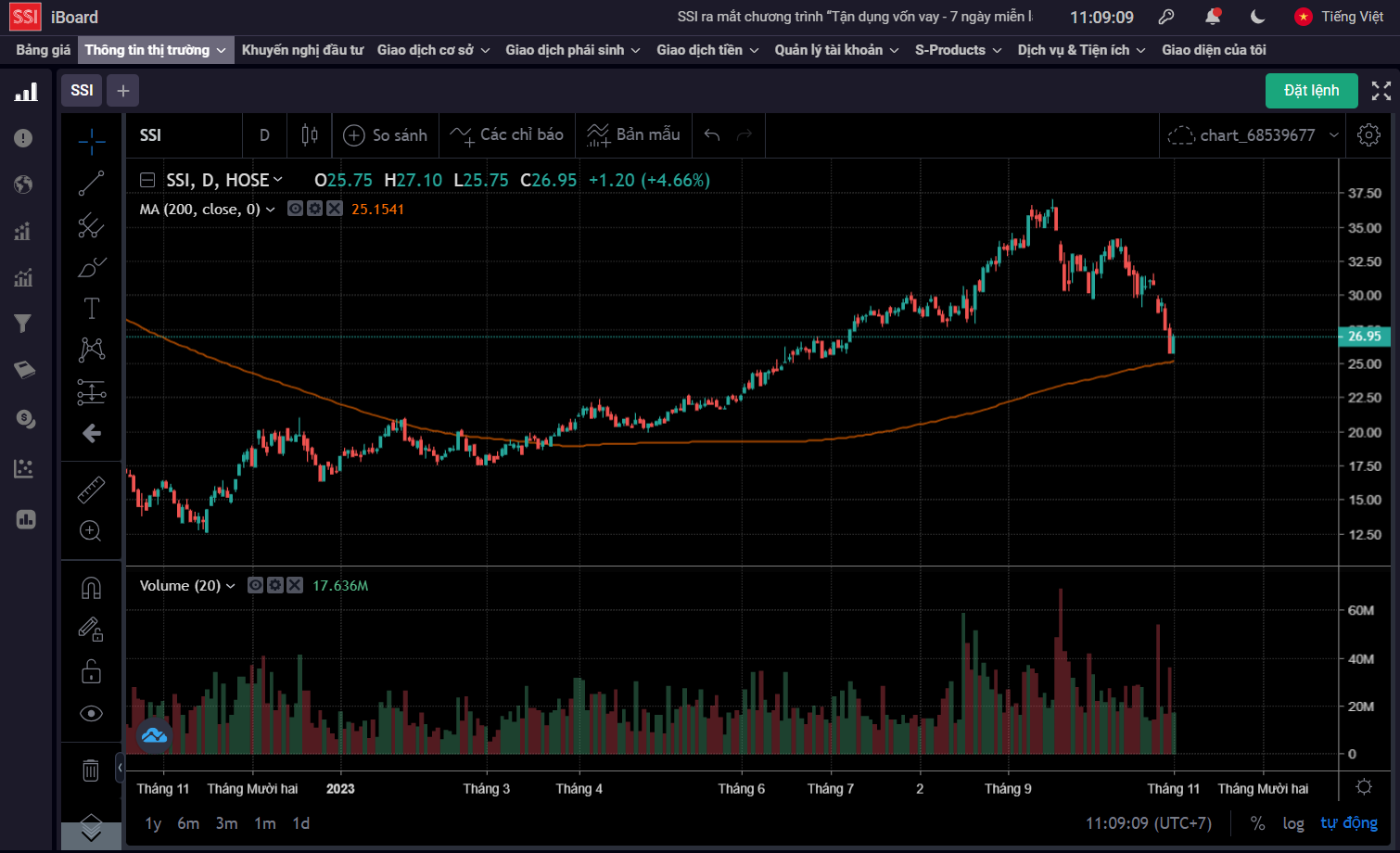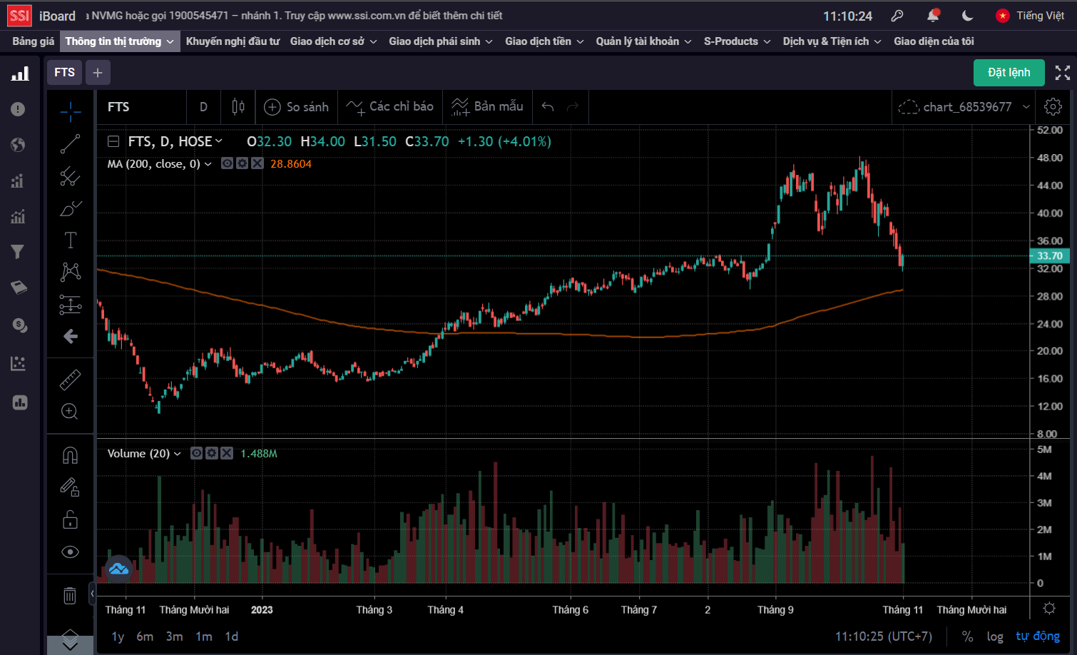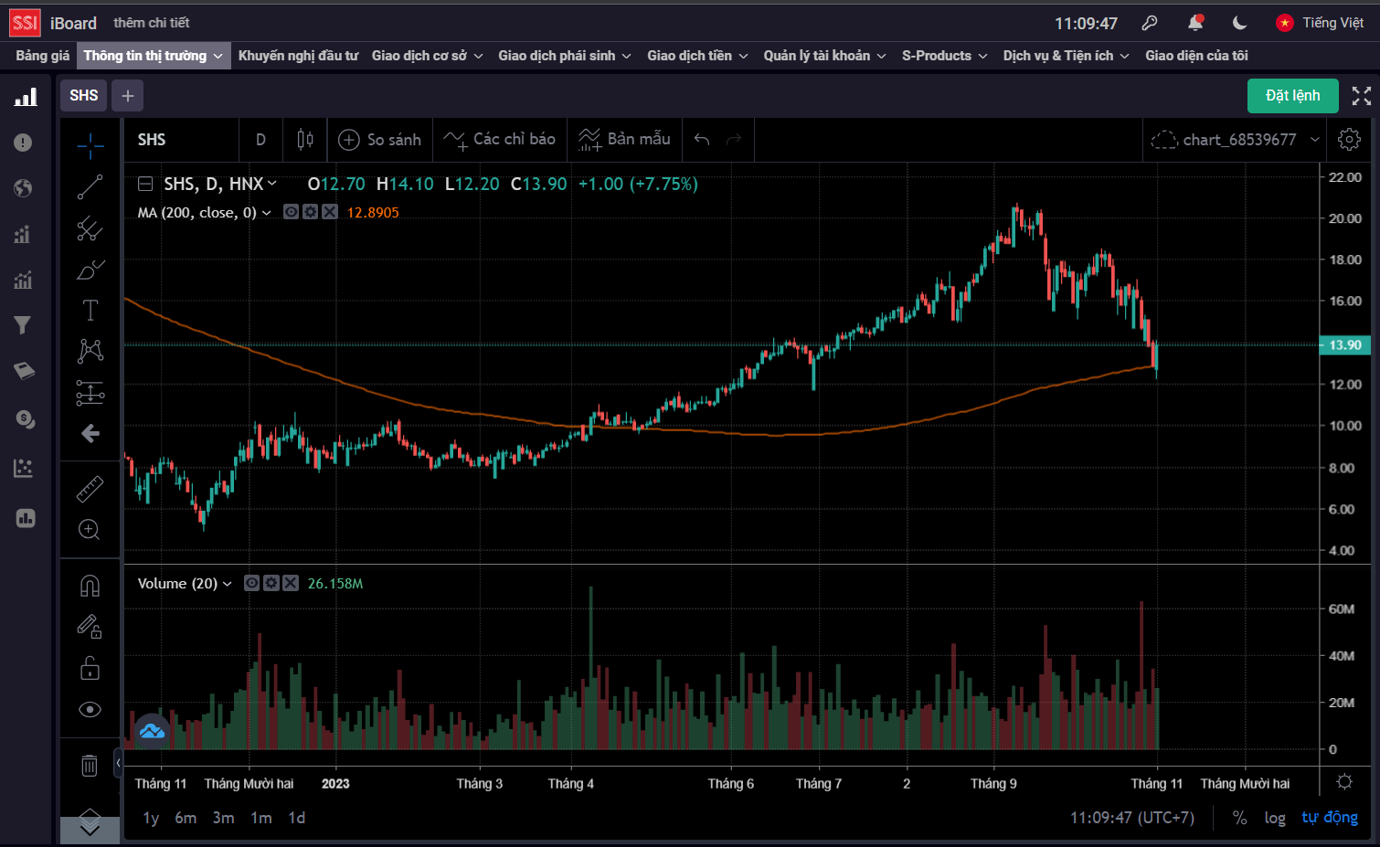 Nhóm chứng khoán nhiều mã đã thủng mạnh qua ma200 rồi, chỉ có số ít còn nằm trên ma200 như SSI, FTS, SHS thôi. Chú ý 3 mã này.