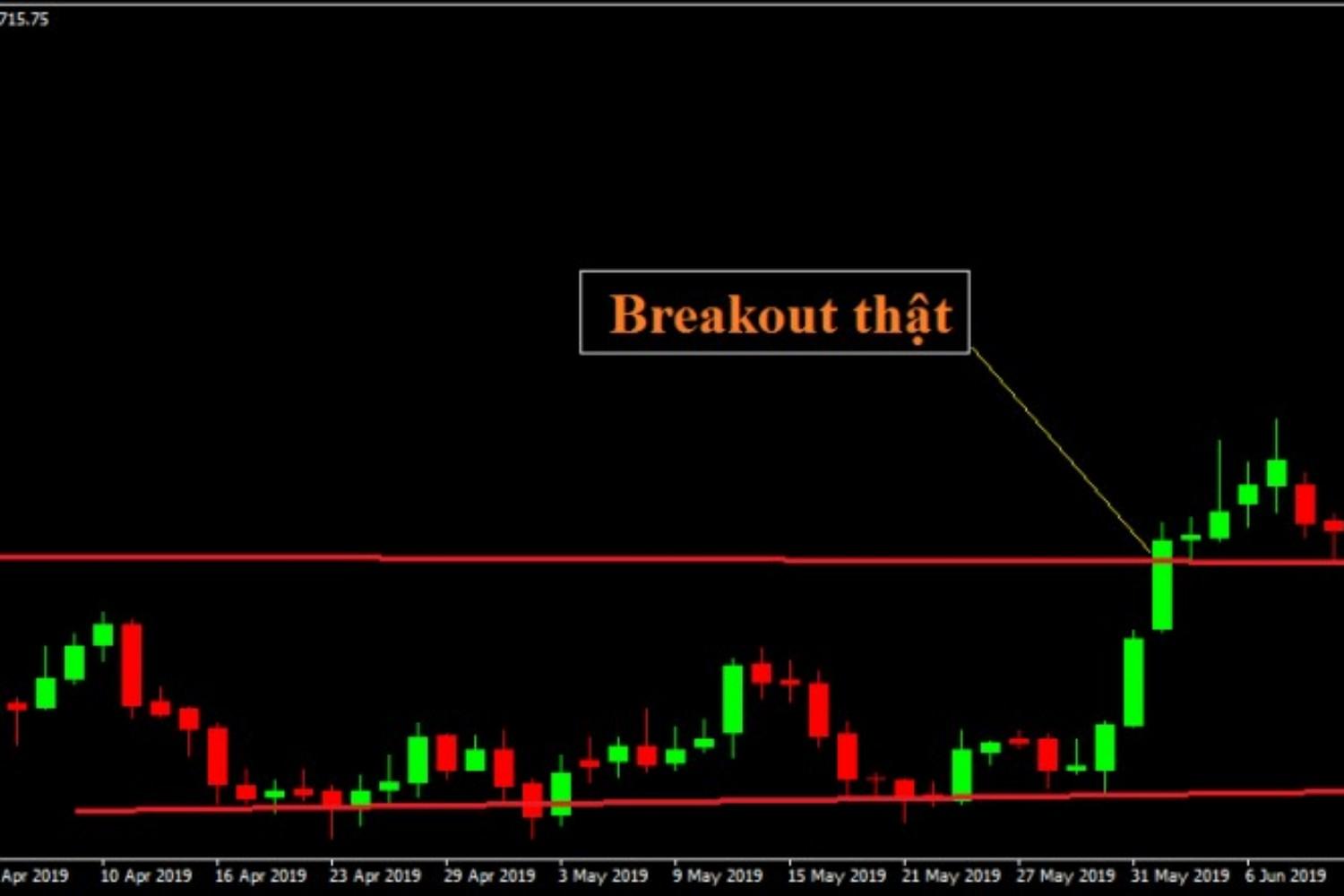 Break Out thật là khi giá tài sản thực sự vượt qua các mức giá quan trọng và di chuyển mạnh mẽ theo hướng đó. Điều này tạo ra cơ hội lớn cho các nhà đầu tư tham gia giao dịch. Tuy nhiên, để xác định Break Out thật, cần phải quan sát khối lượng giao dịch. Nếu khối lượng tăng đột ngột, điều này là một dấu hiệu tích cực cho sự gia tăng của Break Out. Tuy nhiên, nếu khối lượng giao dịch thấp, người giao dịch nên cẩn trọng hơn và xem xét kỹ trước khi tham gia.