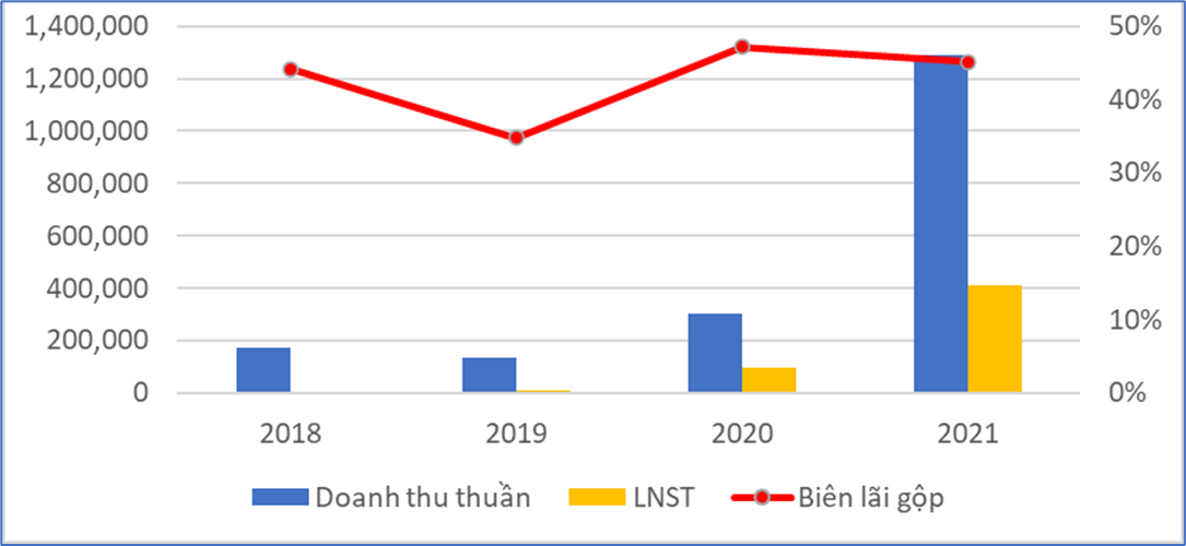 -Tiềm năng tăng trưởng mạnh: dù tình hình dịch bệnh khó khăn, nguồn cung bds giảm Công ty vẫn có có tốc độ tăng trưởngdoanh thu và lợi nhuận thần tốc trong 2 năm liên tiếp , riêng 2021 gấp 4 lần năm 2020, dự kiến 2022 doanh thu 2600 tỉ, LNST 800 tỉ gấp 2 lần 2021.