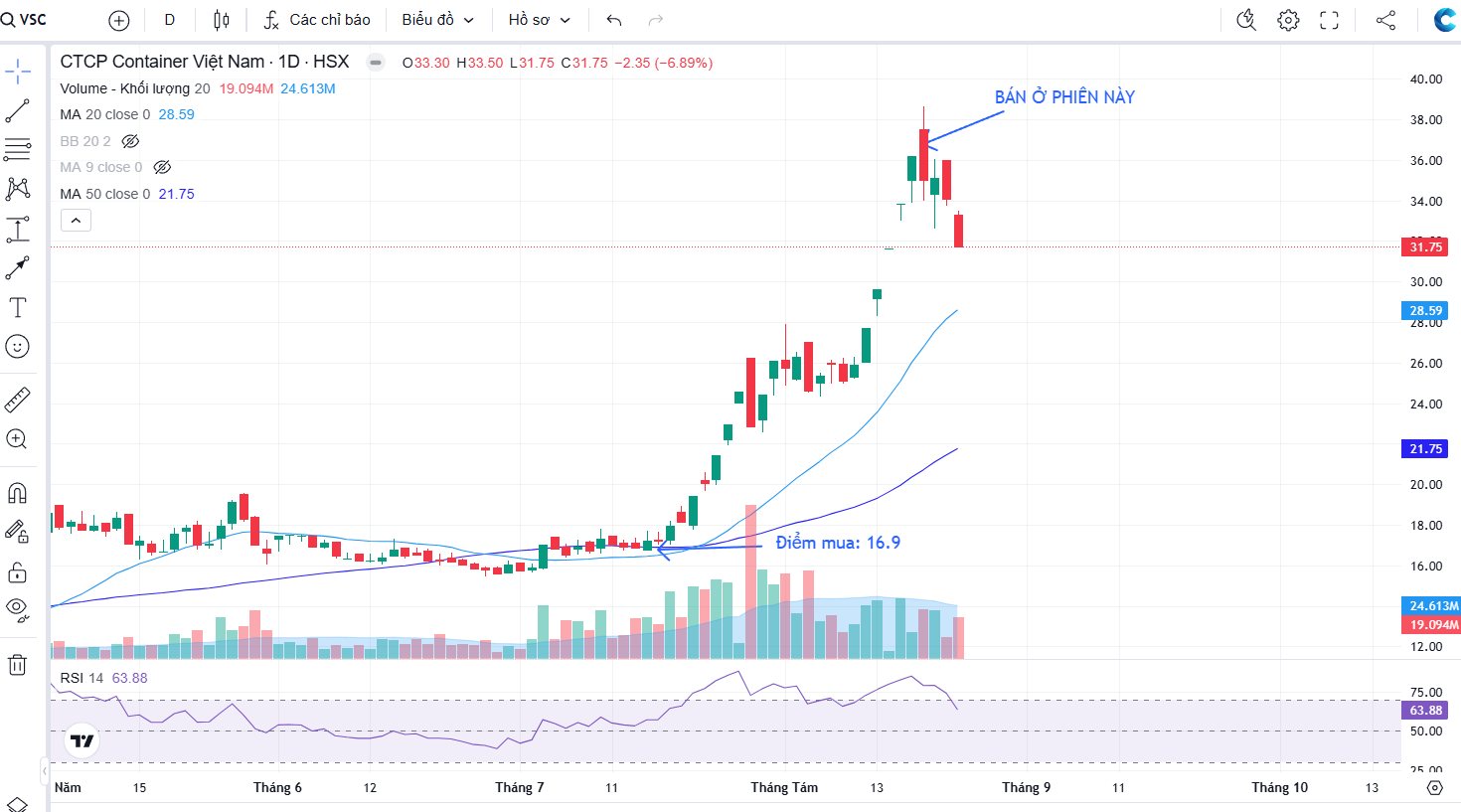 - Điểm mua: 16.9 → Giá phi thẳng lên 38.