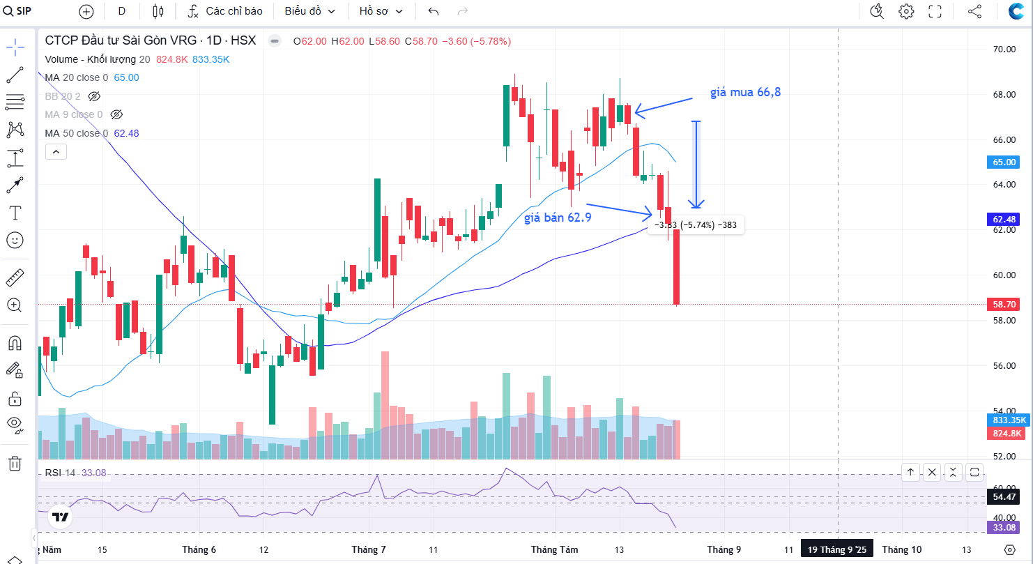 - Điểm mua: 66.8 → Bán 62.9 (cắt lỗ kỷ luật ở mức -5.8%).