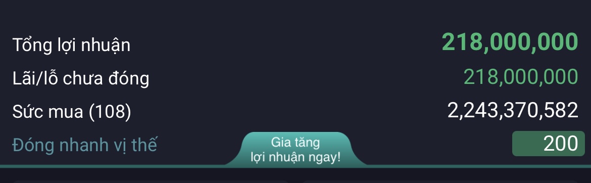 Đây là phái sinh nó tính lời lãi theo 1 ngày đó bác, phiên hqua em giữ L từ thứ 5 mà