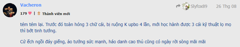 Thằng chủ thớt cũng người mới, cũng nhỏ tuổi thôi… có hô hào gì thì cũng giống như bao người trên diễn đàn này thôi, có phải cứ hô là cả diễn đàn nghe theo đâu . ![]()