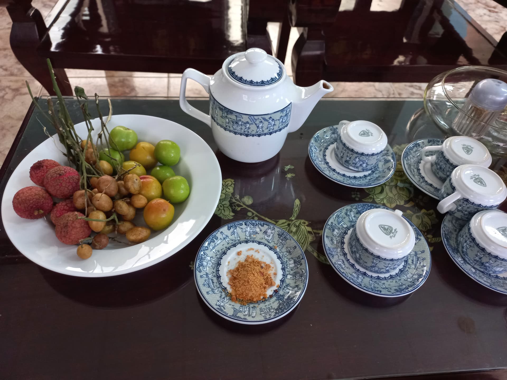 Hàng thửa ở quê a, ăn xong uống trà hơi ngang.