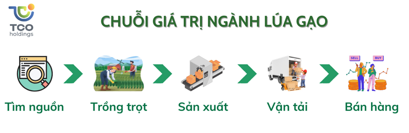 Trong hành trình tìm kiếm hướng đi mới, TCO đã nhận thấy tiềm năng đặc biệt từ ngành nông nghiệp, đặc biệt là chuỗi giá trị ngành lúa gạo. Từ đó, doanh nghiệp xác định được chiến lược cho giai đoạn tăng trưởng tiếp theo.