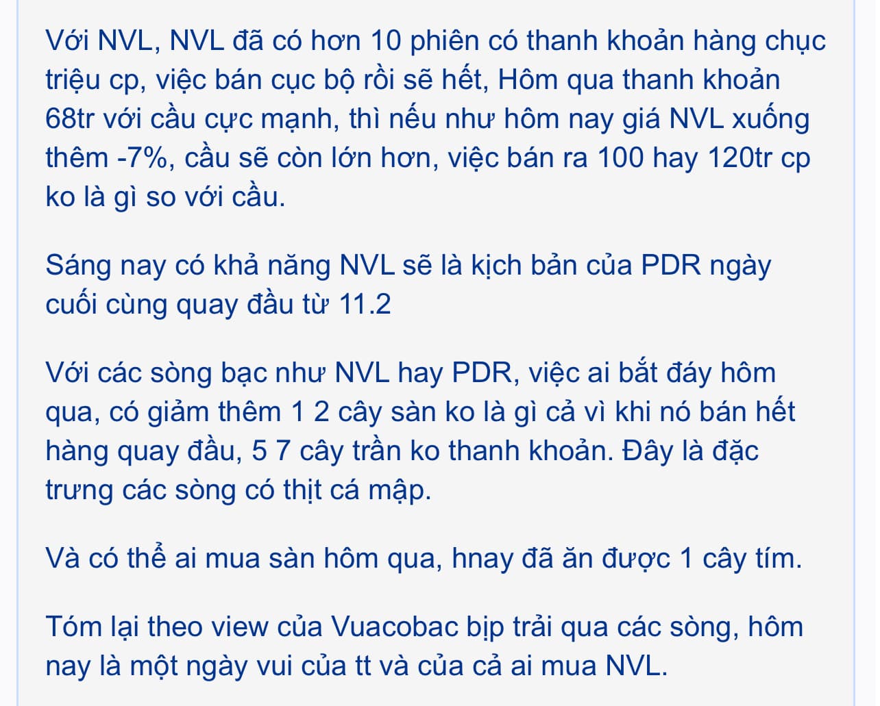 Tuần sau NVL tăng trần 2 phiên, chúng nó sẽ gào lên NVL ngon quá, hoặc cẩn thận bị A.7 upbo. Hà hà