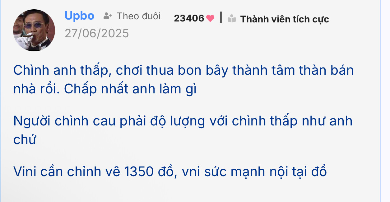 Chình anh thấp, chơi thua bon bây thành tâm thàn bán nhà rồi. Chấp nhất anh làm gì
