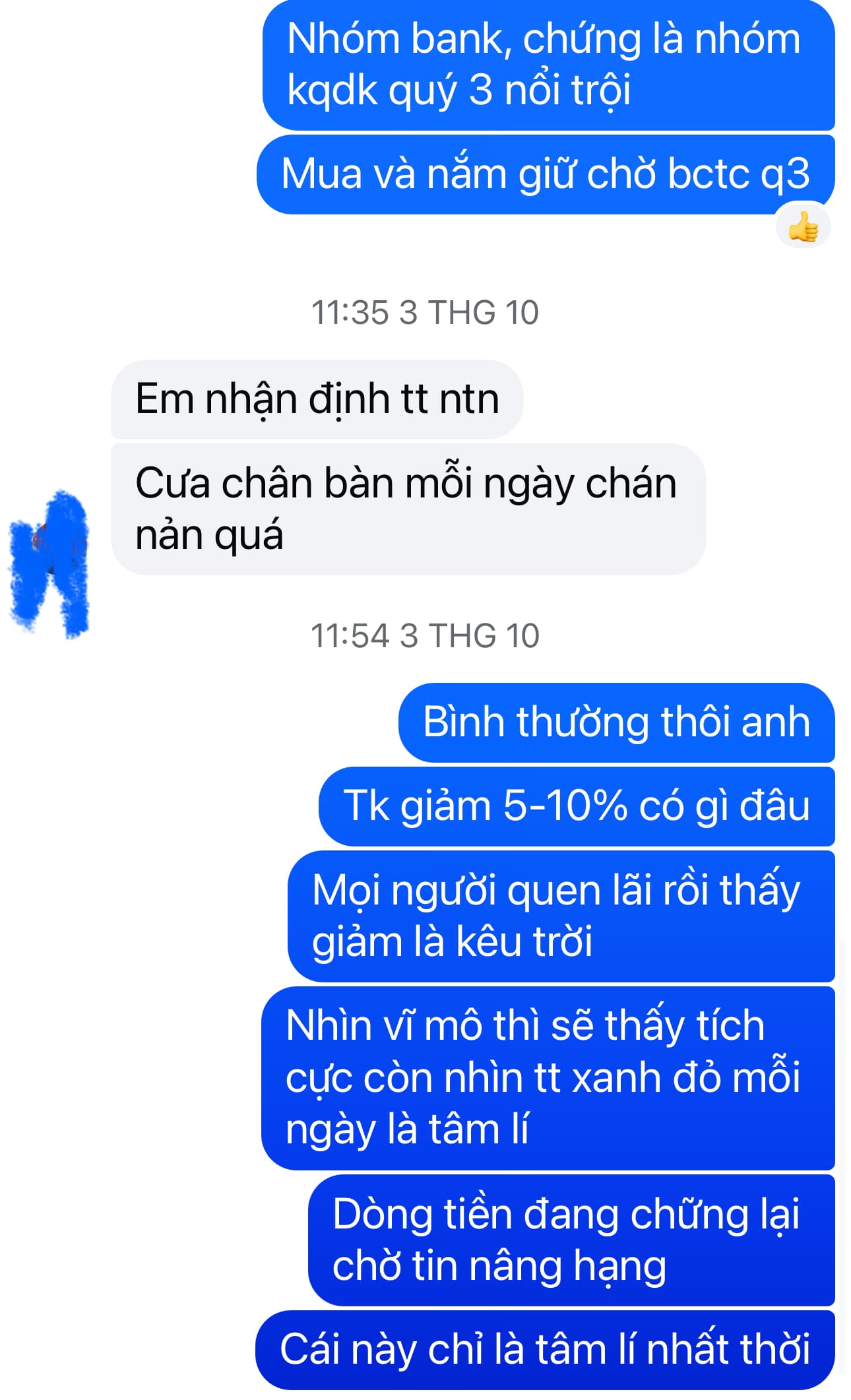 Quan điểm cá nhân em: nđt hãy niệm câu thần chú: “bơm tiền và bơm tiền” còn tất cả diễn biến thời gian gần đây chỉ là tâm lí. Phiên hôm qua khi có rò rỉ thông tin nâng hạng ngay lập tức thấy dòng tiền xuất hiện đã chứng minh luận điểm: vĩ mô ko thay đổi chỉ tâm lí hành vi con người thay đổi.