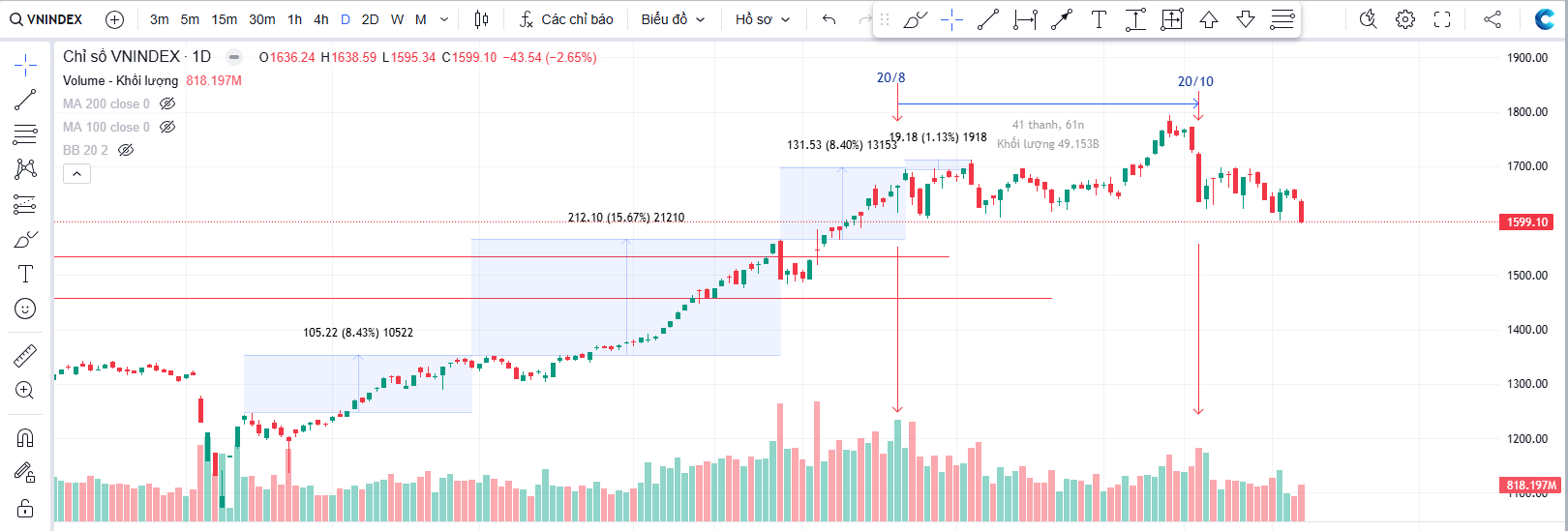 Theo cách nhìn của đệ, thì tt nó tạo đỉnh từ 20/8-20/10, phiên 20/10 là kết thúc tạo bulltrap và chính thức vào pha đạp lăn quay.