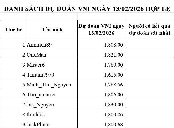 Chỉ số VNI đóng phiên ngày 13/02/2026 là 1.824,09.