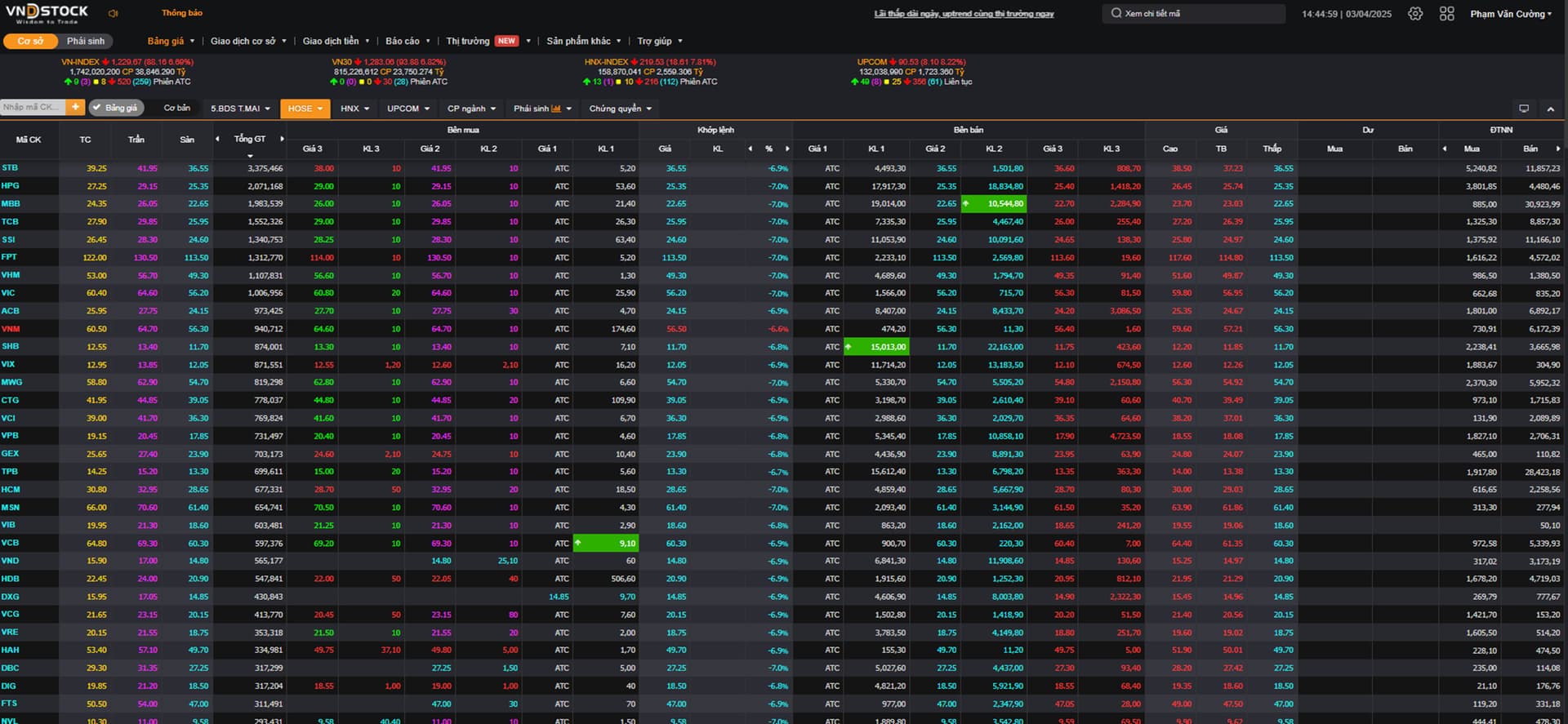 hết phiên có xem được tổng dư bán toàn thị trường ko lão đệ