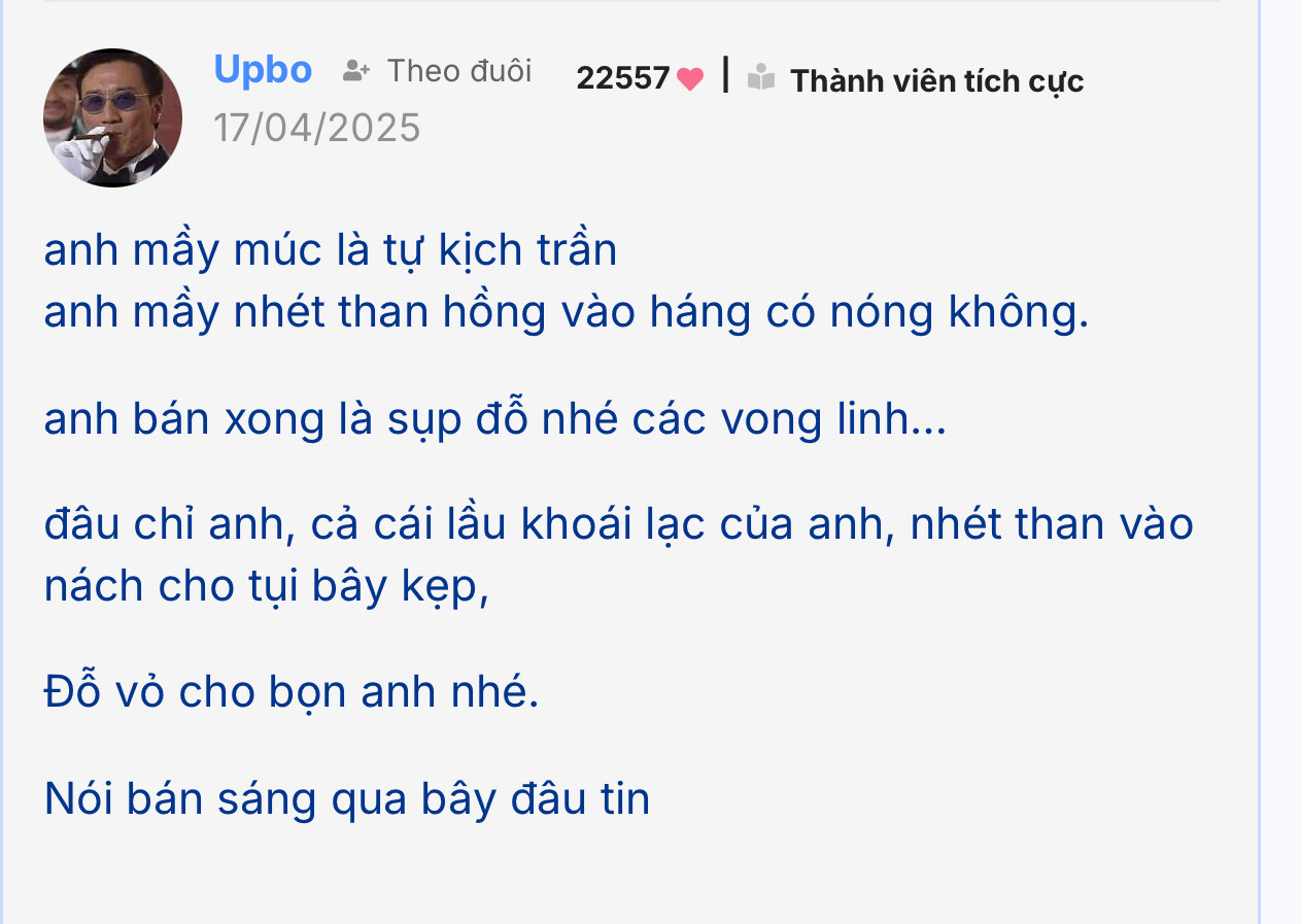 Để làm được điều đó, loài người sẽ có những ngày cuồn cuộn sự hưng phấn, phấn khích, hào hứng, nô nức, bán đi là trong tiếc nuối và múc xúc là giàu, loài người phải dùng đòn bẩy tài chánh để thu lợi nhuận kép theo cấp số nhơn mới mau giàu có, nơi mà media gọi các huyền thoại là ‘dòng tiền thông minh”… Mọi công cụ, mọi thứ đang sẵn sàng chờ quý bạc sử dụng để trở nên giàu có, nếu thiếu thì gọi cho Hưng nhùng 1 cái, bơm giấy tăng mẹc rin cho nhơn loại thỏa mãn cơn khát khao làm giàu… và khi rùng mình, nhớ đừng gọi anh Tea vì anh ấy đã ra đi và không còn … hơi thở.