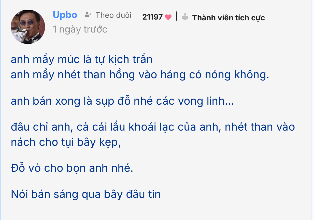 Vợ bỏ con chê rồi, mấy mụ sồn sồn thì là hàng online, nó có nấu cơm cho mà tọng vào họng được đâu ![]()