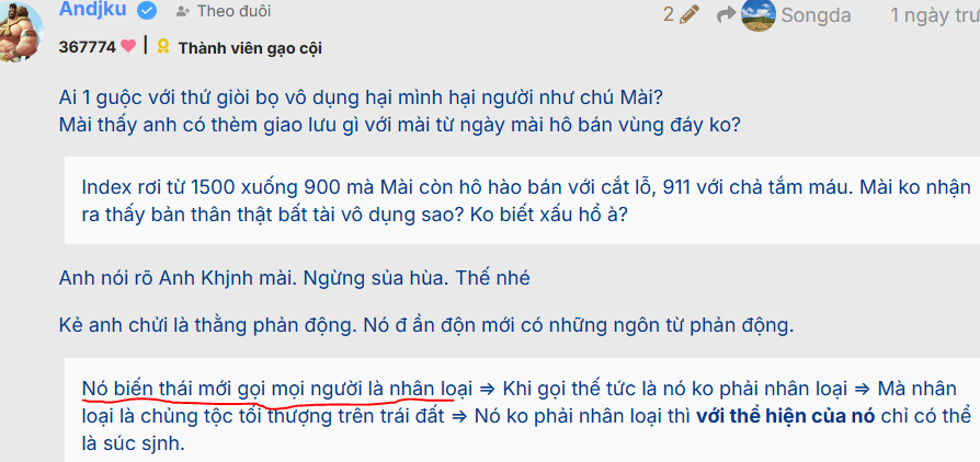 Lục lại các pốt theo từng mốc thời gian. Để xem ai là bạn là thù của chú mầy. Để xem ai là người “Quỳ lạy chúng mầy bán ở cái đọt 1500”