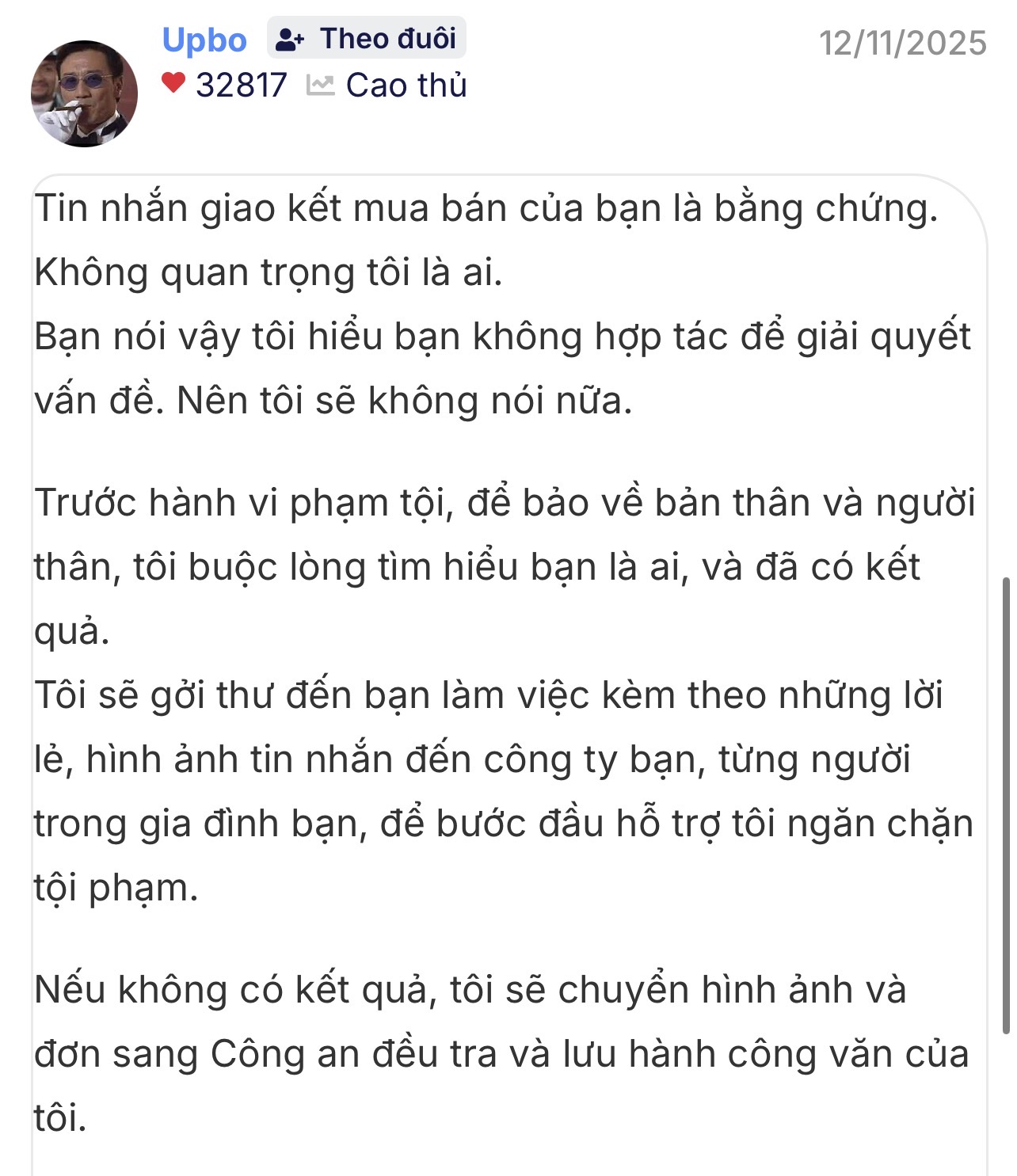 Anh chỉ viết đúng 1 dòng phản biện về thị trường rất đàng hoàng room chú mà chú không biết anh chửi và mạt sát anh không ra gì.