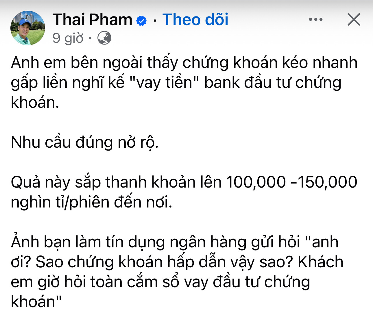 Vay bank vào sàn thật rồi các bác ạ! Giờ gần như ko để ý Vni tăng bao nhiêu điểm nữa, xem tk mình có tăng hay ko thôi