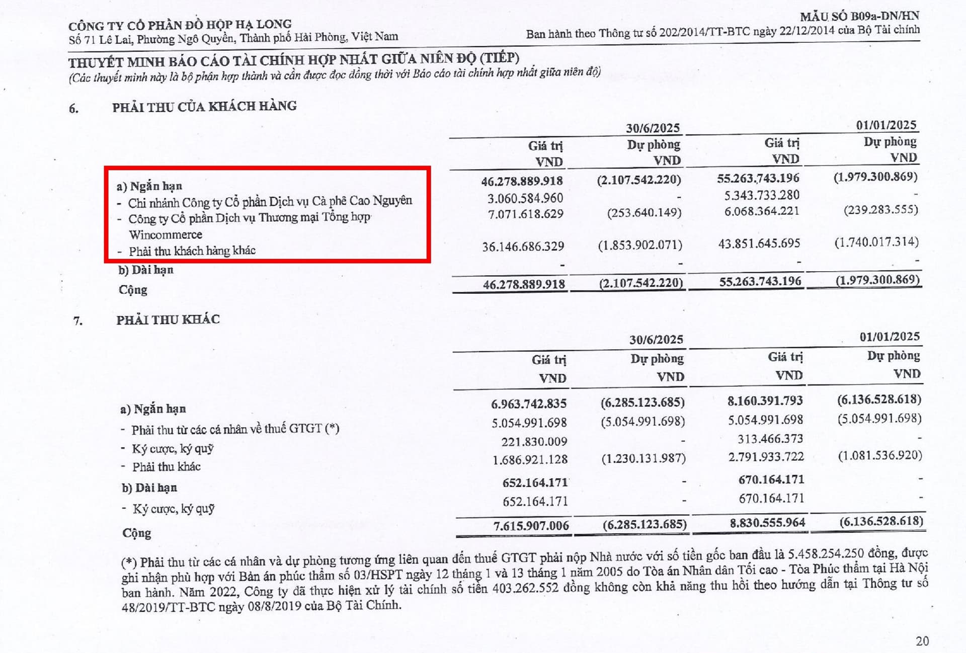 Ví dụ khoản phải thu từ Wincommerce là hơn 7 tỷ VNĐ, đã trích lập dự phòng hơn 253 triệu tức là có sự thất thoát nhất định