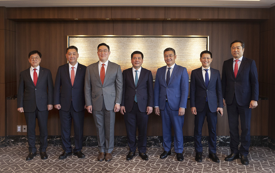 Vào ngày 25 tháng 2, tại Khách sạn Lotte ở Sogong-dong, Seoul, một bức ảnh kỷ niệm đã được chụp trong cuộc họp “Tăng cường hợp tác trong cơ sở hạ tầng đất hiếm và điện”. Có mặt trong bức ảnh là Koo Bon-gyu, Tổng giám đốc điều hành của LS Cable & System (thứ ba từ trái sang), Lee Sang-ho, Tổng giám đốc điều hành của LS Eco Energy (thứ hai từ trái sang), Kim Byung-ok, Tổng giám đốc điều hành của LS Marine Solutions (ngoài cùng bên phải), và Nguyễn Hồng Điền, Bộ trưởng Bộ Công thương Việt Nam (thứ tư từ trái sang), cùng những người tham dự khác. / Được cung cấp bởi LS Eco Energy