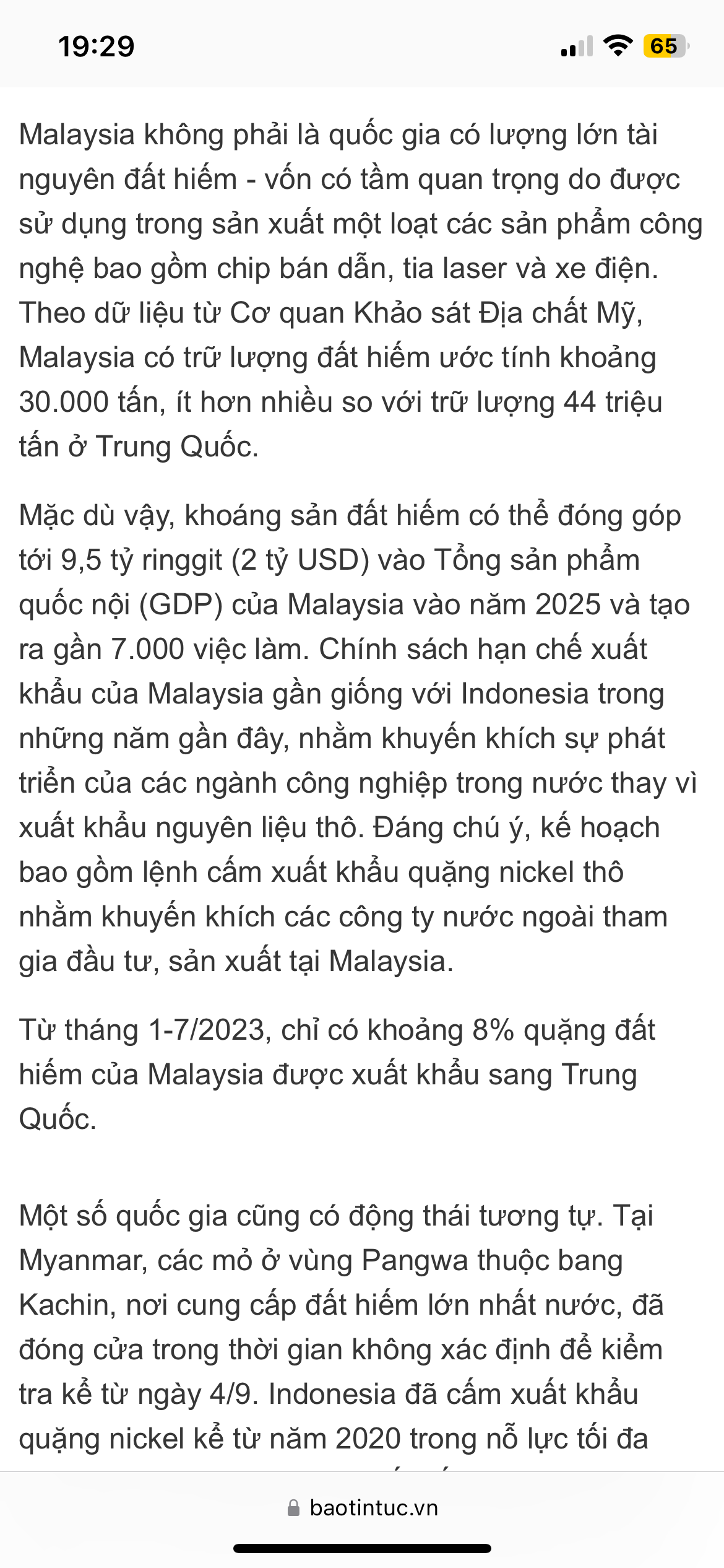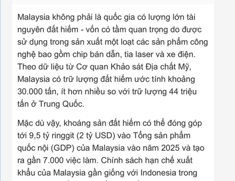- Malaysia có 30.000 tấn đất hiếm mà Kiếm 2 tỷ usd / năm từ đất hiếm ( ae bình luận vụ này )