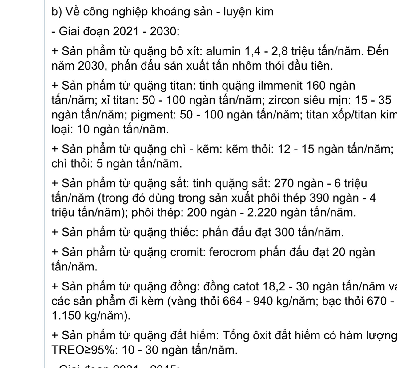 ( chưa kể đất hiếm khủng sau nay khai thác )