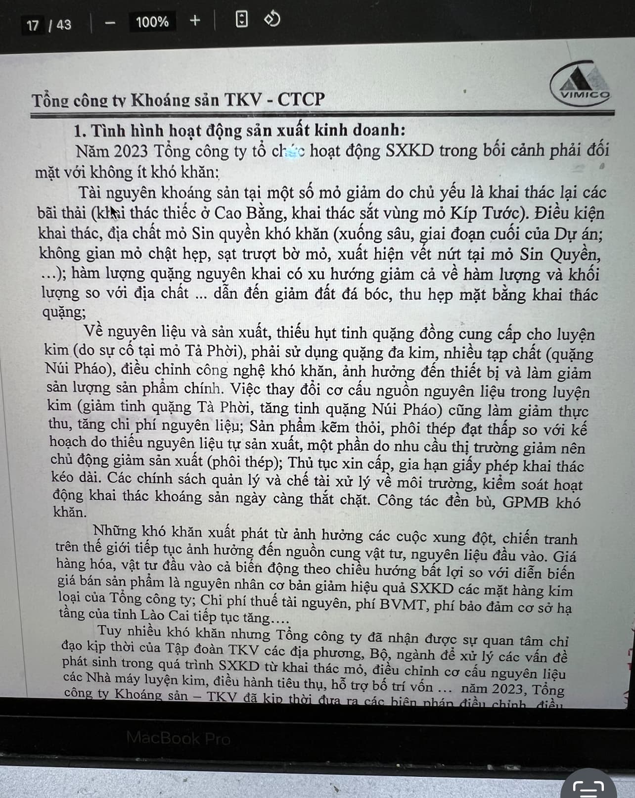 Kcb lợi nhuận đi lùi mỏ tĩnh túc hết mỏ nậm kép trước pháp thăm dò rất ít quặng còn cbi mỏ sắt lèo tèo