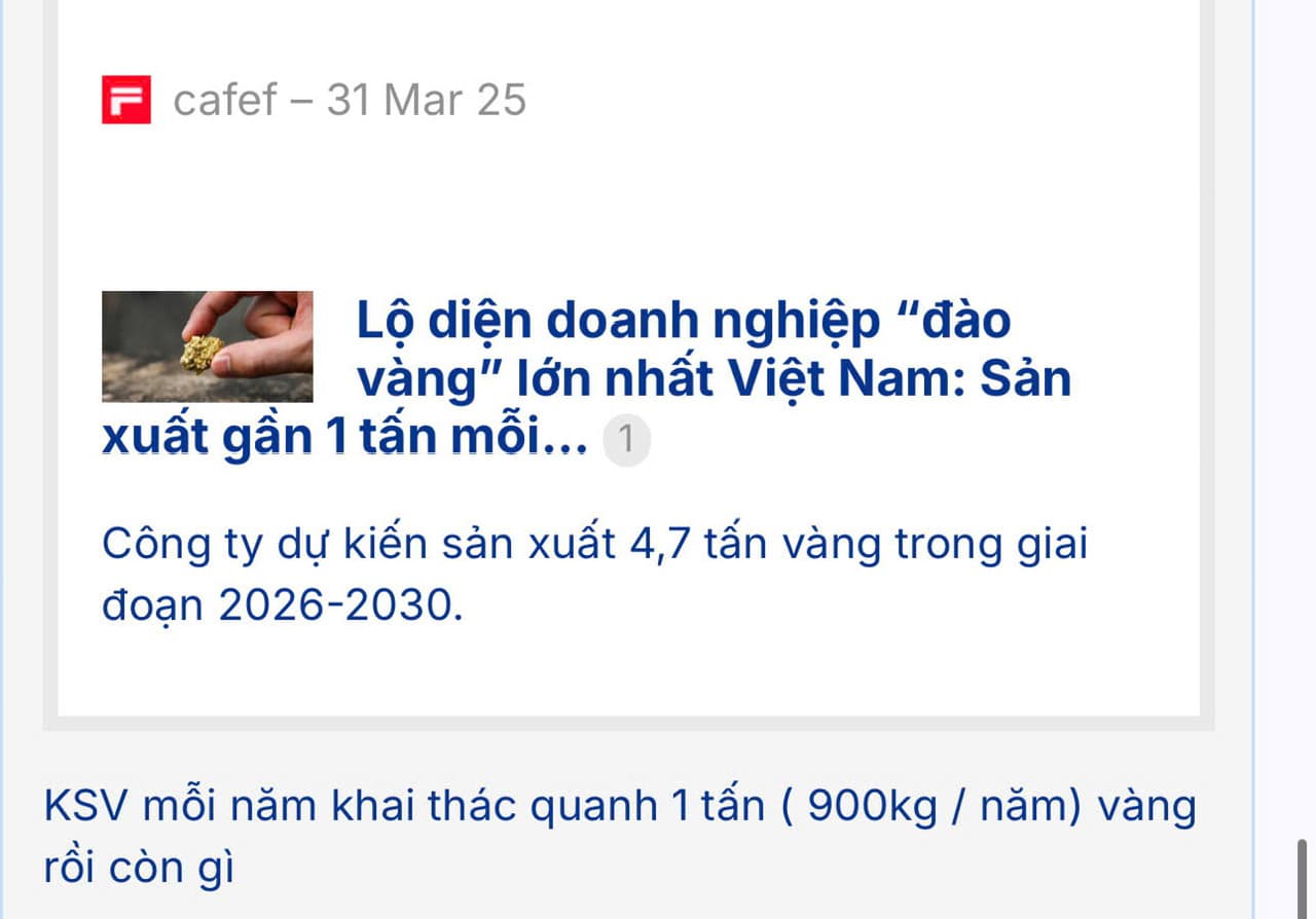 KSV mỗi năm khai thác quanh 1 tấn vàng là phê rồi, vàng càng nhiều thì càng tốt