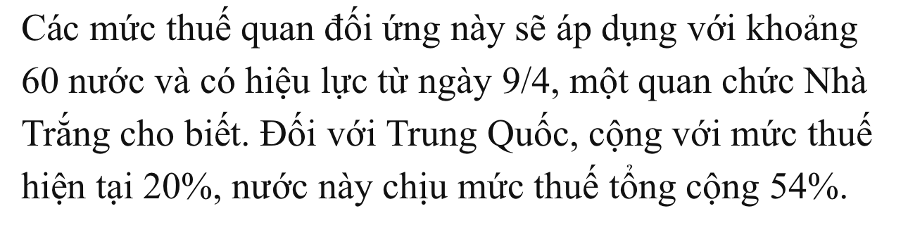 Một số hàng hóa không bị áp thuế đối ứng kỳ này :