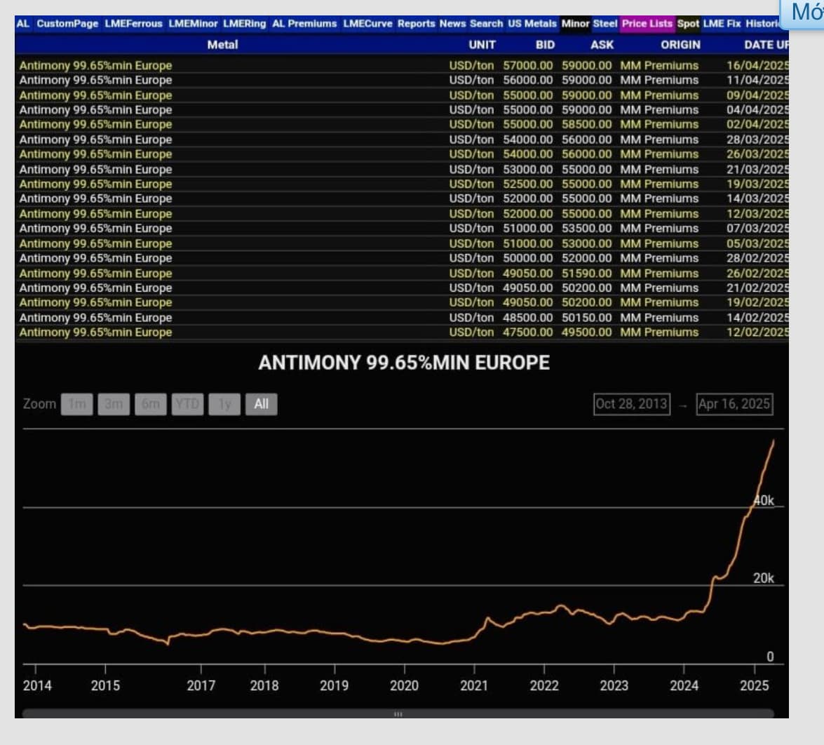 Mà người ta còn dự báo Antimon có thể lên 150k ( nghĩa là tăng 30 lần so với giá cách đây khoảng 3 năm )