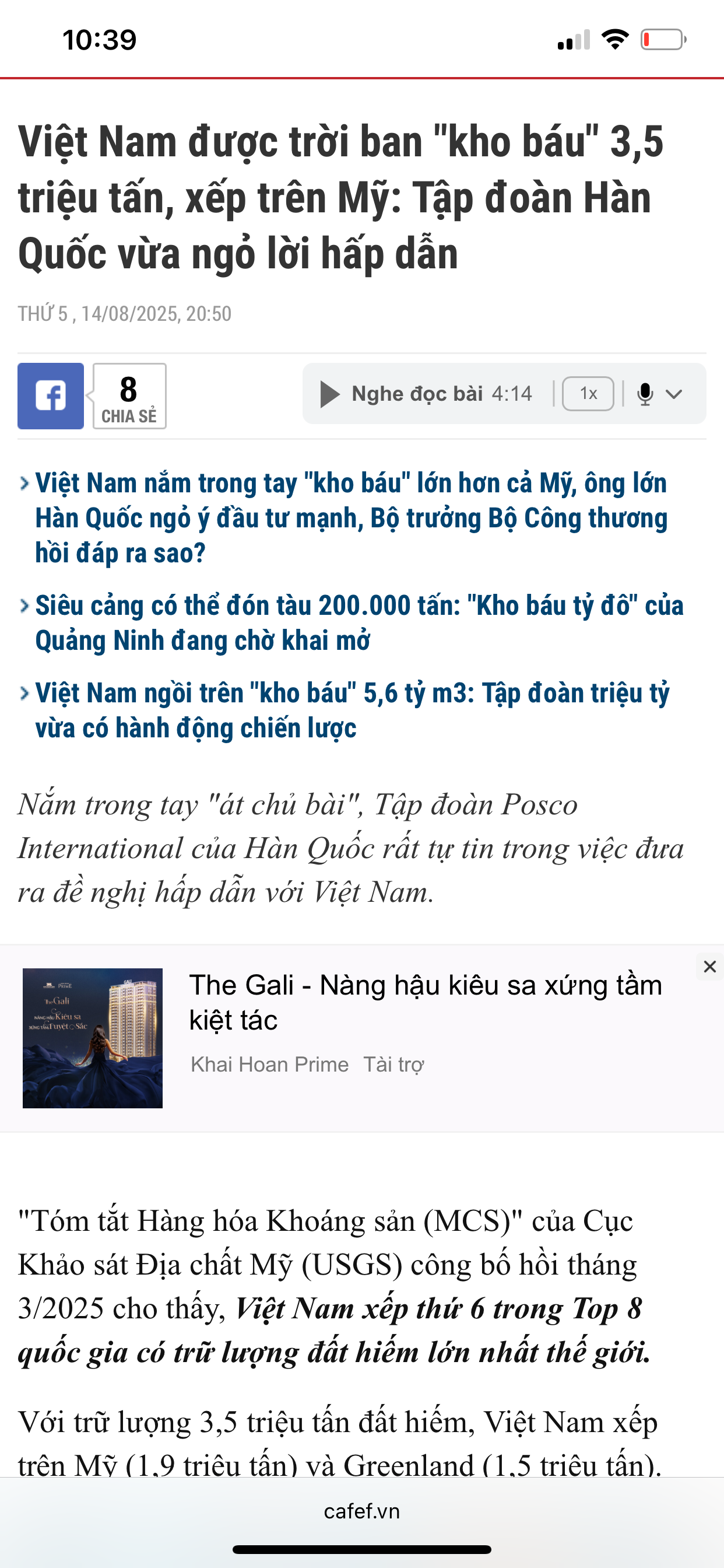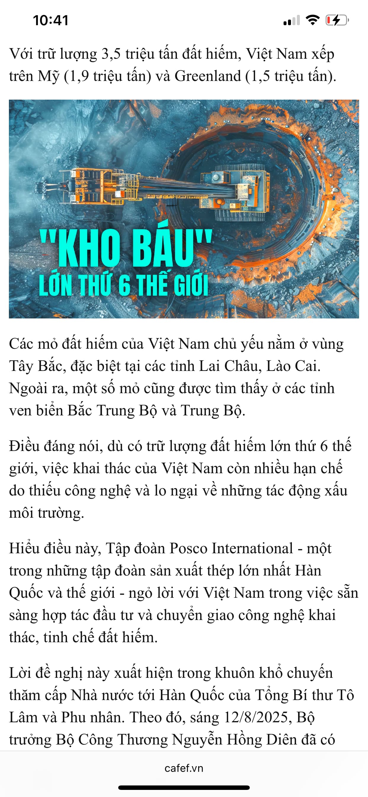 Hạn chế duy nhất của ksv là công nghệ khai thác, chế biến đất hiếm. Nay đã hợp tác vs a hàn xẻng rồi thì sẽ rất ok