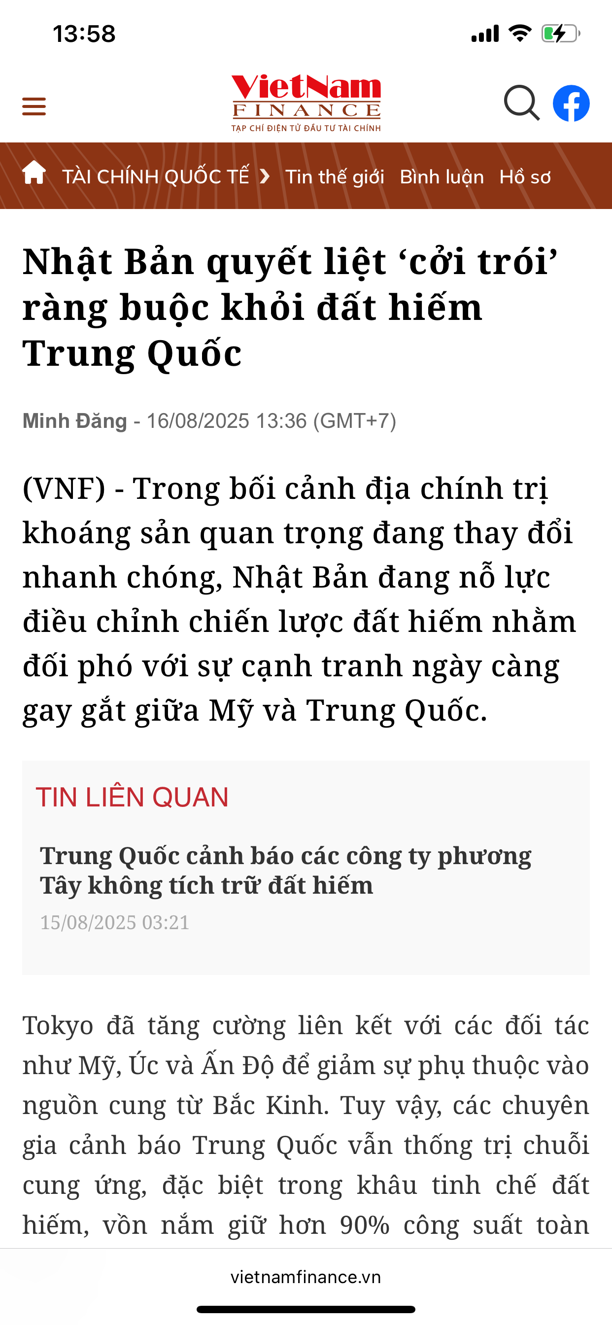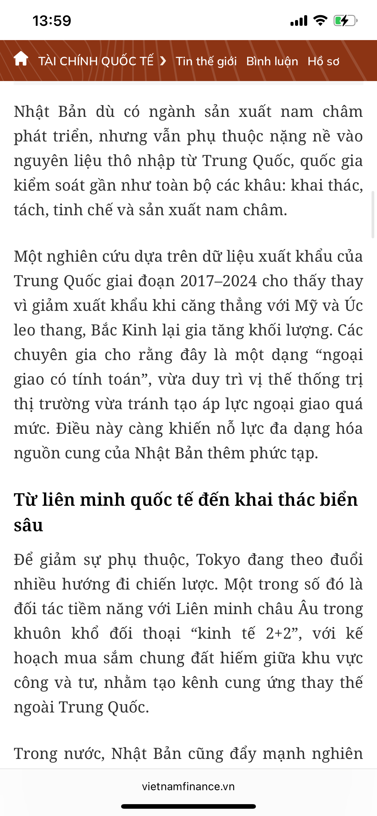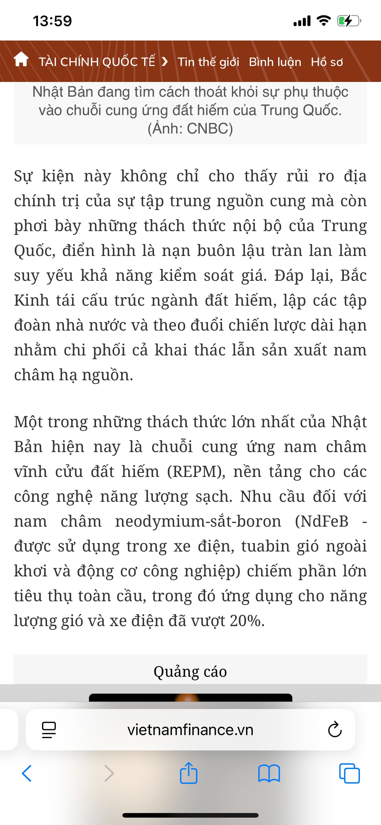 Tương lai (thực ra ngay cả hiện tại) thế giới cạnh tranh gay gắt về đất hiếm (rare earths) vì những lý do sau: Nhu cầu tăng mạnh Đất hiếm là nguyên liệu chiến lược trong sản xuất xe điện, tuabin gió, điện thoại thông minh, pin, chip, radar, vũ khí dẫn đường… Xu hướng năng lượng sạch, công nghệ cao, trí tuệ nhân tạo, và quân sự đều cần đất hiếm. Nguồn cung tập trung Trung Quốc hiện nay kiểm soát ~60–70% sản lượng đất hiếm toàn cầu, và hơn 80% công đoạn tinh chế. Mỹ, EU, Nhật, Hàn… đều phụ thuộc nặng vào chuỗi cung ứng đất hiếm từ Trung Quốc. Nếu có xung đột thương mại hoặc địa chính trị, đất hiếm có thể bị “vũ khí hóa” (weaponized). Cạnh tranh địa chính trị Mỹ và các đồng minh đang tìm cách đa dạng hóa nguồn cung: khai thác tại Mỹ, Úc, Canada, Việt Nam, châu Phi. Các nước giàu trữ lượng (như Việt Nam có mỏ đất hiếm lớn ở Lai Châu) có thể trở thành điểm nóng chiến lược. Công nghệ chế biến quyết định quyền lực Đào đất hiếm thì nhiều nước làm được, nhưng công nghệ tinh chế cực khó, độc hại và tốn kém. Ai nắm được công nghệ tinh luyện sạch + quy mô lớn sẽ nắm chuỗi giá trị.