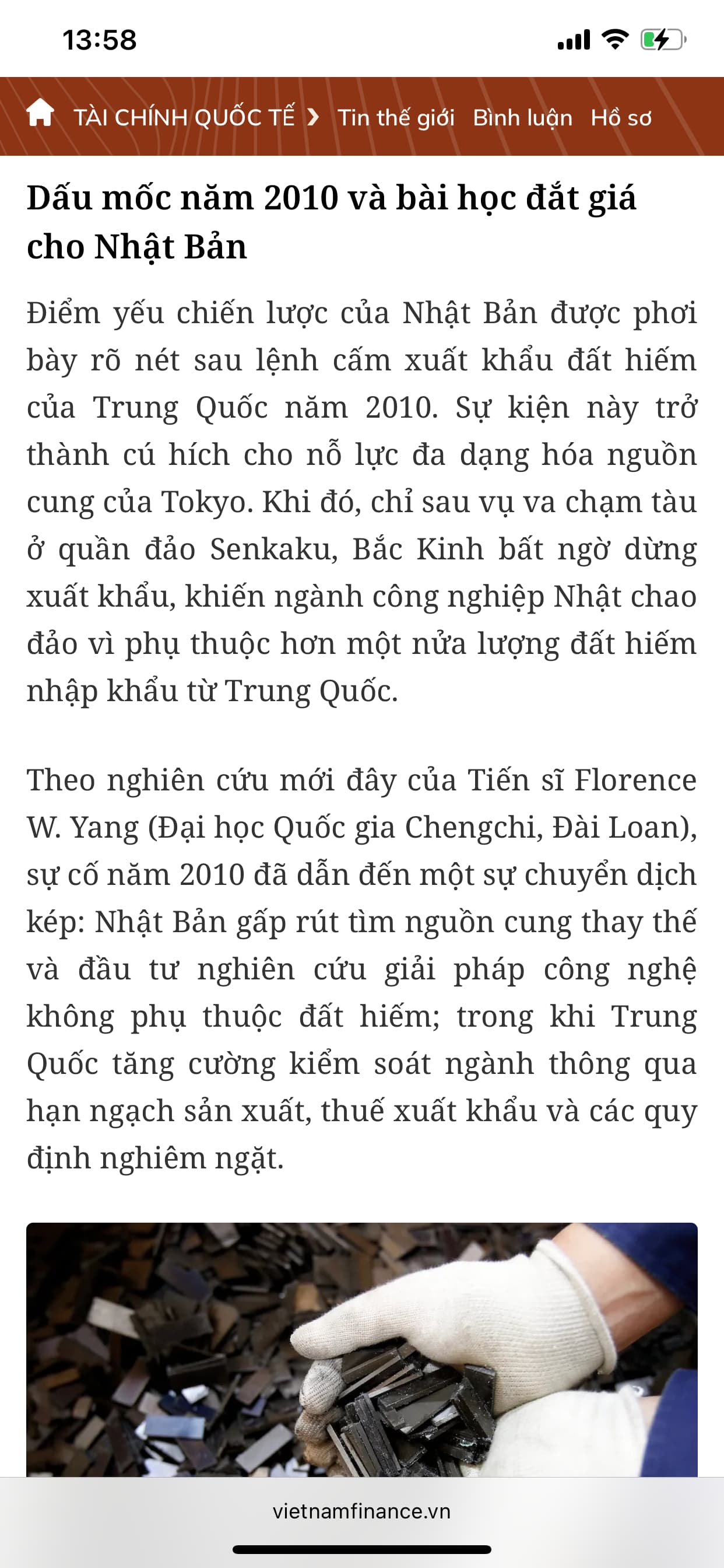 – Năm 2010, Trung Quốc hạn chế xuất khẩu đất hiếm sang Nhật ⇒ giá đất hiếm tăng vọt gấp 4–10 lần chỉ trong vài tháng.