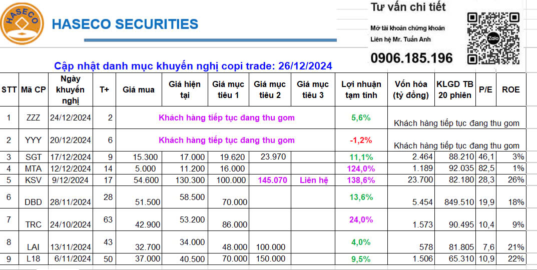 Tôi là Nguyễn Tuấn Anh, chuyên viên tư vấn tại Công ty CP Chứng khoán Hải Phòng (HASECO). Với kinh nghiệm và sự phân tích sâu sắc, tôi đã lựa chọn những mã cổ phiếu tiềm năng với mức sinh lời ấn tượng như: