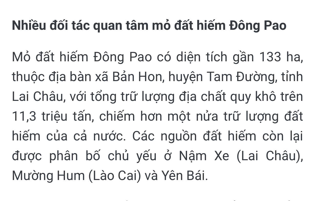 Một đông pao có tới 11.3 triệu tấn đất hiếm ( lớn nhất Việt Nam, chiếm hơn 50% đất hiếm của VN =? Ước khoảng bao nhiêu 1210 tỷ usd ?
