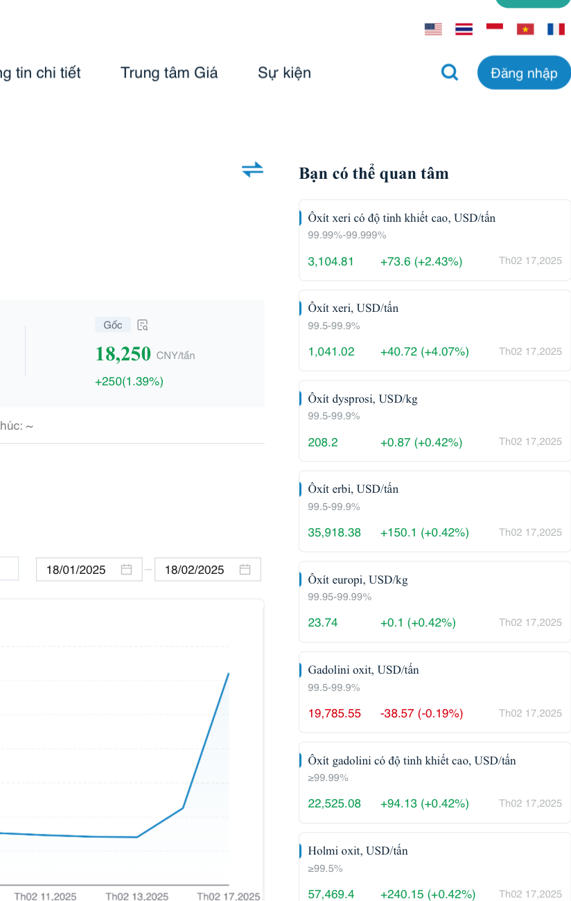 Ô-xit đất hiếm hôm qua tăng từ 2% tới 4%