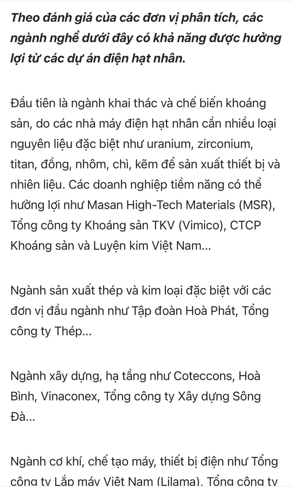 Điện hạt nhân Cần nhiều titan, Vonfram , nhôm, kém, thiếc, đồng, chì