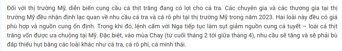 Ngoài ra cá tra còn hưởng lợi từ việc Tq mở cửa, Nga bị cấm vận, hạn hán tại Tq,…