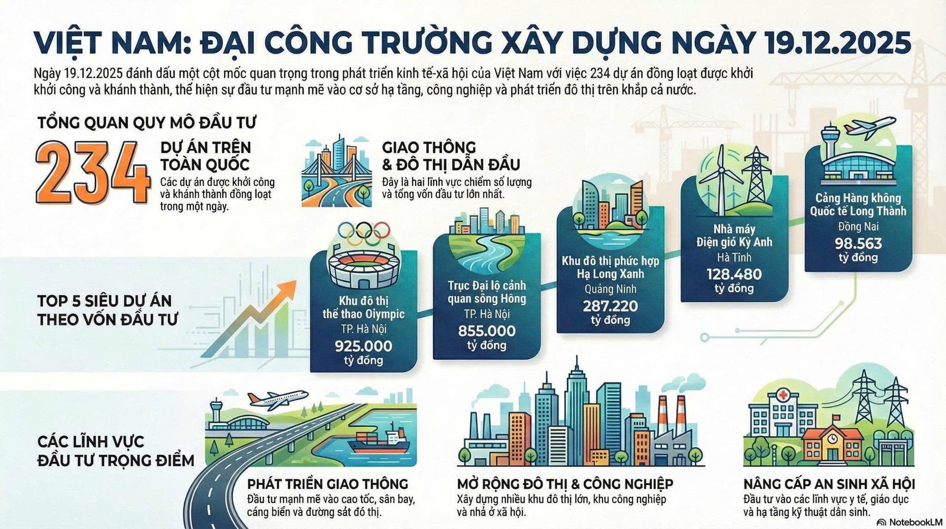 Sự kiện quan trọng trong tháng 12 chính thức sẽ diễn ra, cả nước sẽ đồng loạt tổ chức lễ khởi công, khánh thành và thông xe kỹ thuật hàng loạt công trình, dự án trọng điểm có quy mô đặc biệt lớn (ước tính trên 3,4 triệu tỷ).