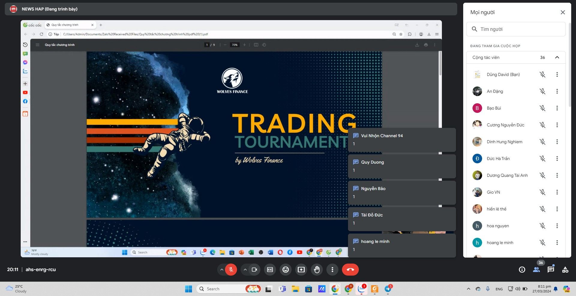 - Với sự tổ chức thành công Buổi Live thông báo ý nghĩa, thể lệ cuộc thi, giải thưởng, quay số để chọn ra Thành viên tham gia thi đấu ở mỗi nhóm HVL trong tuần đầu tiên diễn ra vào tối thứ 4 ngày 27/03. BTC đã chọn ra 12 thí sinh may mắn tham gia thi đấu tuần đầu tiên và 5 thí sinh may mắn nhận được các phần quà hấp dẫn từ BTC trong buổi Live.