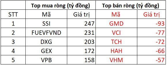 Chiều mua, cổ phiếu SSI và CCQ FUEVFVND được mua ròng mạnh nhất toàn thị trường với giá trị lần lượt 247 tỷ và 231 tỷ đồng, DXG cũng được rót ròng hơn 200 tỷ đồng. Theo sau, loạt cổ phiếu được mua ròng mạnh còn có: GEX (172 tỷ) và VPB (158 tỷ),…