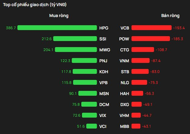 Ngược lại, VCB là cổ phiếu khối ngoại bán mạnh nhất với 193 tỷ đồng. Theo sau, các cổ phiếu POW và CTG cũng bị “xả” 185 tỷ đồng và 109 tỷ đồng.