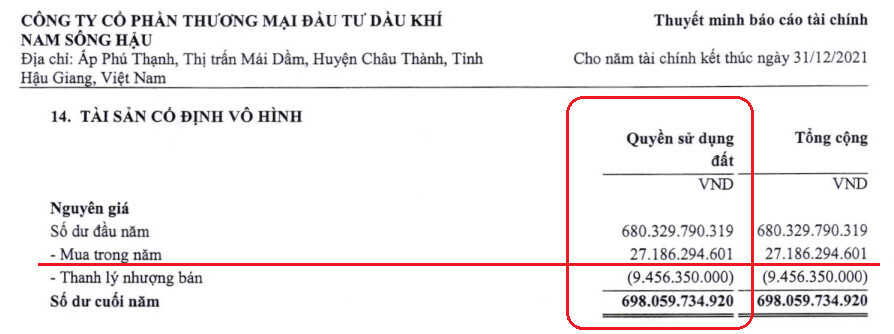 Bên cạnh đó, báo cáo tài chính cho thấy, Công ty đang ghi nhận hơn 481 tỷ đồng bất động sản đầu tư (chưa tính theo giá thị trường), bao gồm 28 quyền sử dụng đất tại huyện Châu Thành, tỉnh Hậu Giang, với diện tích 44.728,9 m2.