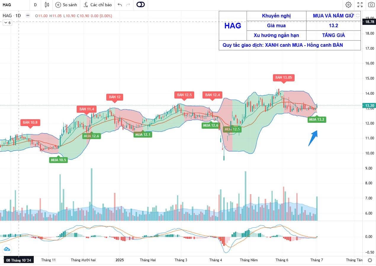 • HAG bắt đầu có dấu hiệu “thoát nền” với nến xanh và thanh khoản cải thiện.