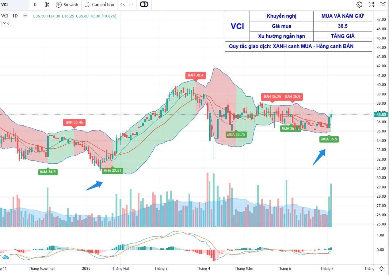 1. VCI (Chứng khoán Bản Việt) • Điểm mua tham khảo: 36.0 – 36.8
