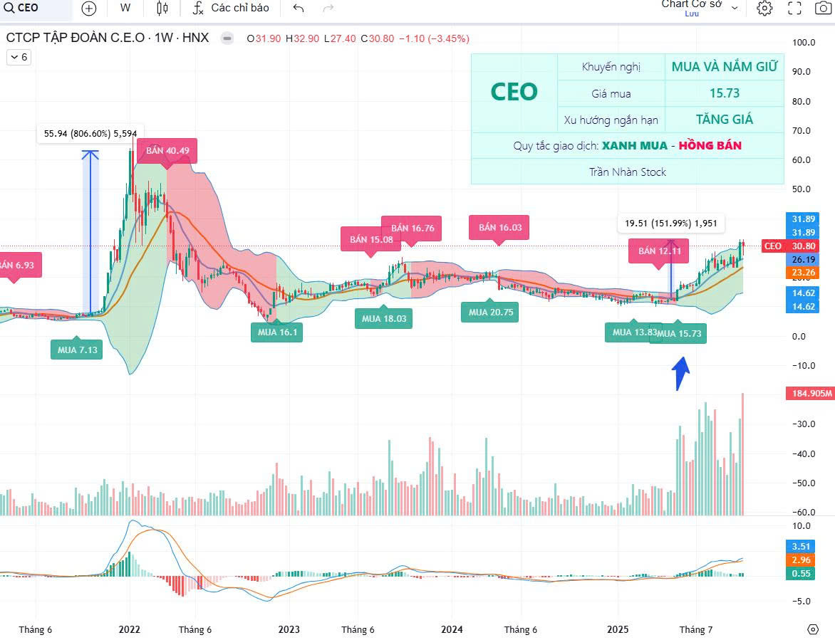Chu kỳ 2025-2027 mới chỉ bắt đầu từ T4/2025 tiềm năng tăng giá nhóm BĐS còn nhiều giả sử CEO về đỉnh cũ 2022 vùng 60x thì tiềm năng tăng giá từ vùng 30x vẫn còn dư địa 100%