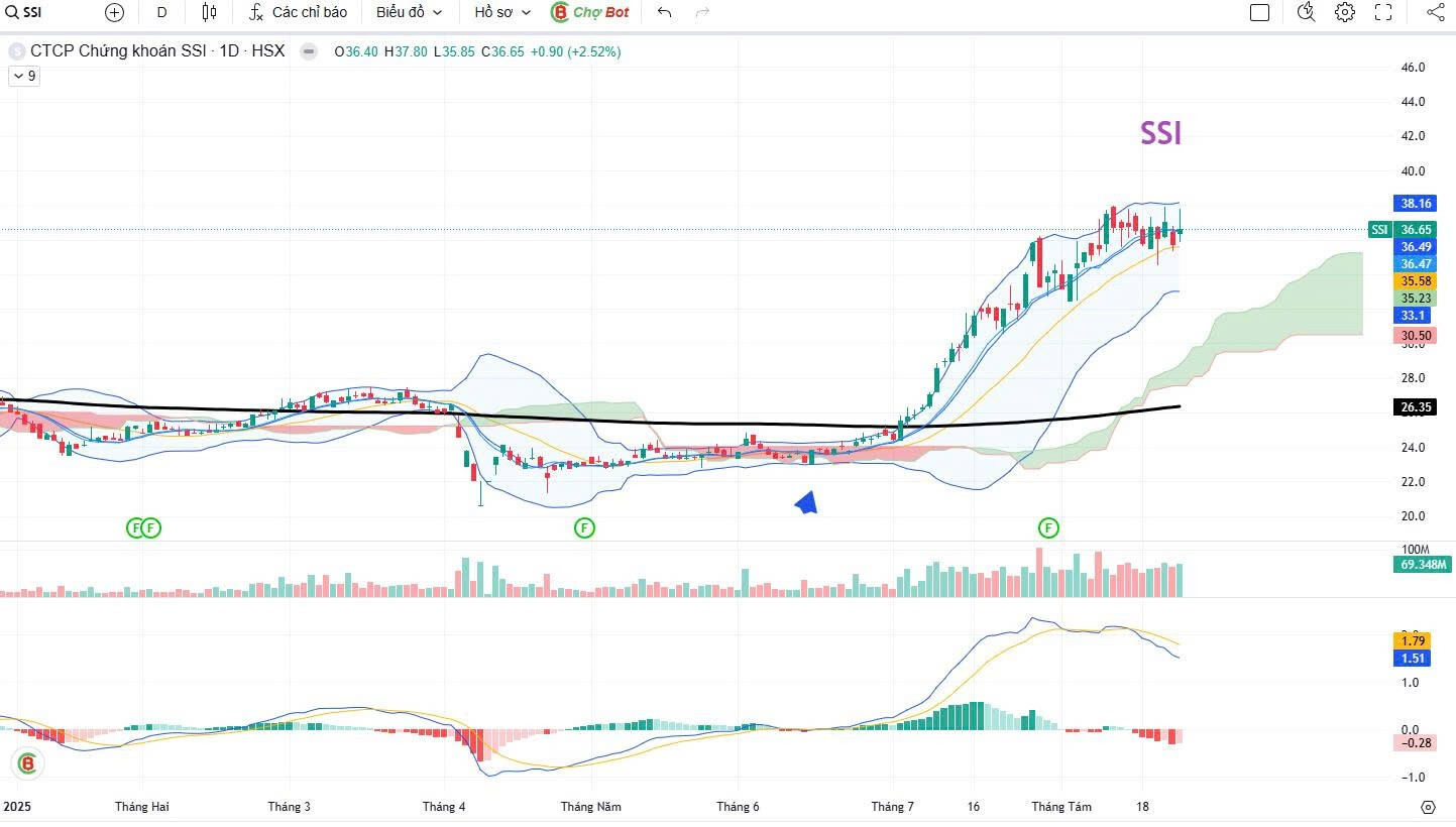 • Vượt mây Ichimoku: Cho tín hiệu xu hướng tăng rõ ràng.