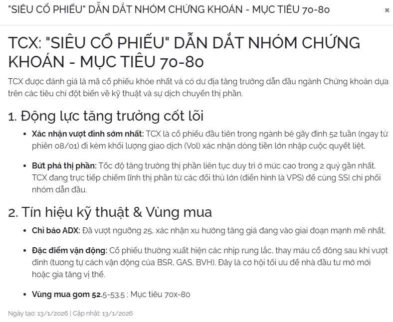 TCX được đánh giá là mã cổ phiếu khỏe nhất và có dư địa tăng trưởng dẫn đầu ngành Chứng khoán dựa trên các tiêu chí đột biến về kỹ thuật và sự dịch chuyển thị phần.