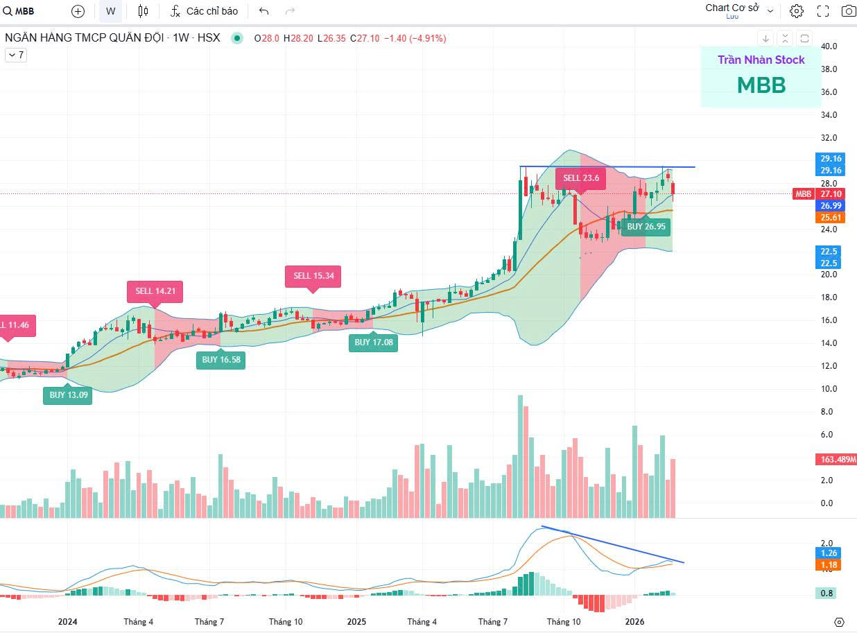 MBB - Cổ phiếu MBB suy yếu kỹ thuật: Khuyến nghị canh bán