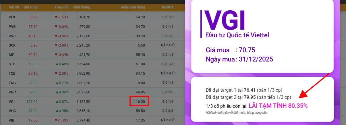 Khuyến nghị mua cổ phiếu “VGI” phiên ngày 31/12 của phần mềm đạt lợi nhuận gần 75%.