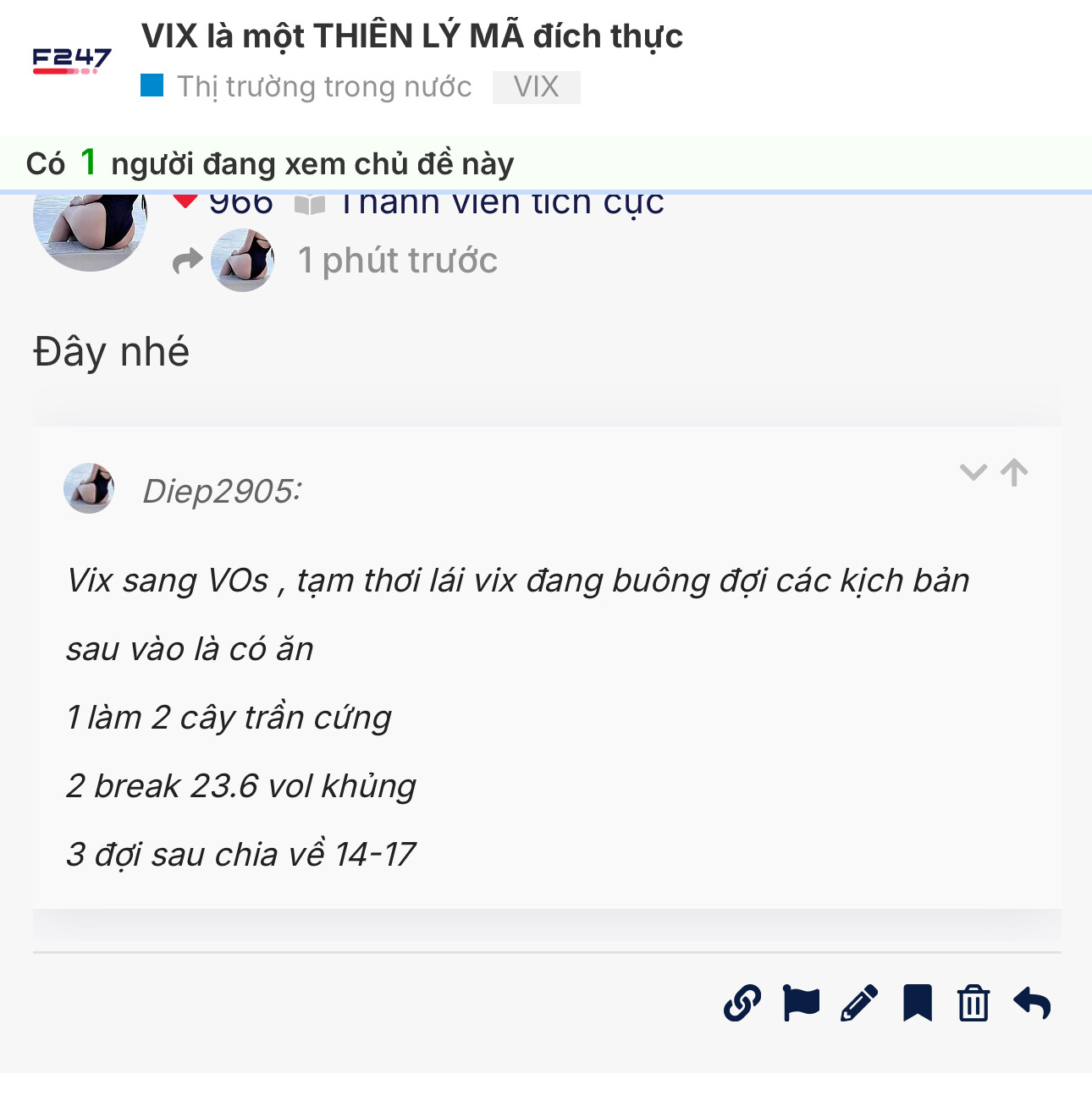 Kịch bản vix mai vượt kháng cự 23.8 khoẻ test lại vùng 24.2 test gần đây xomg mốc này ổn lên 26